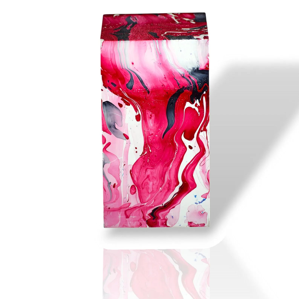 Urne en bois de manguier fabriquée à la main Aqua Swirl Resin Design Memorial Keepsake Urne funéraire pour cendres