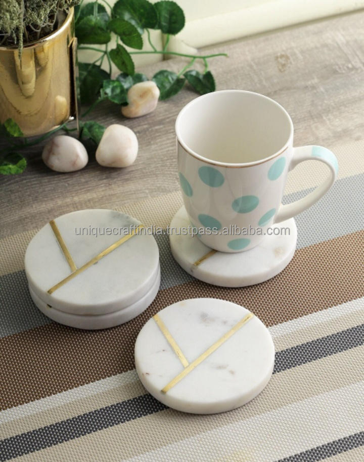 Sous-verres en marbre fabriqués à la main finition lisse ensemble de sous-verres en pierre naturelle pour l'intérieur de la cuisine derniers tapis et tampons de conception