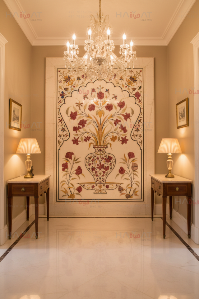 Carreaux floraux en marbre incrusté, modernes et imperméables, faits à la main, pour intérieurs de luxe