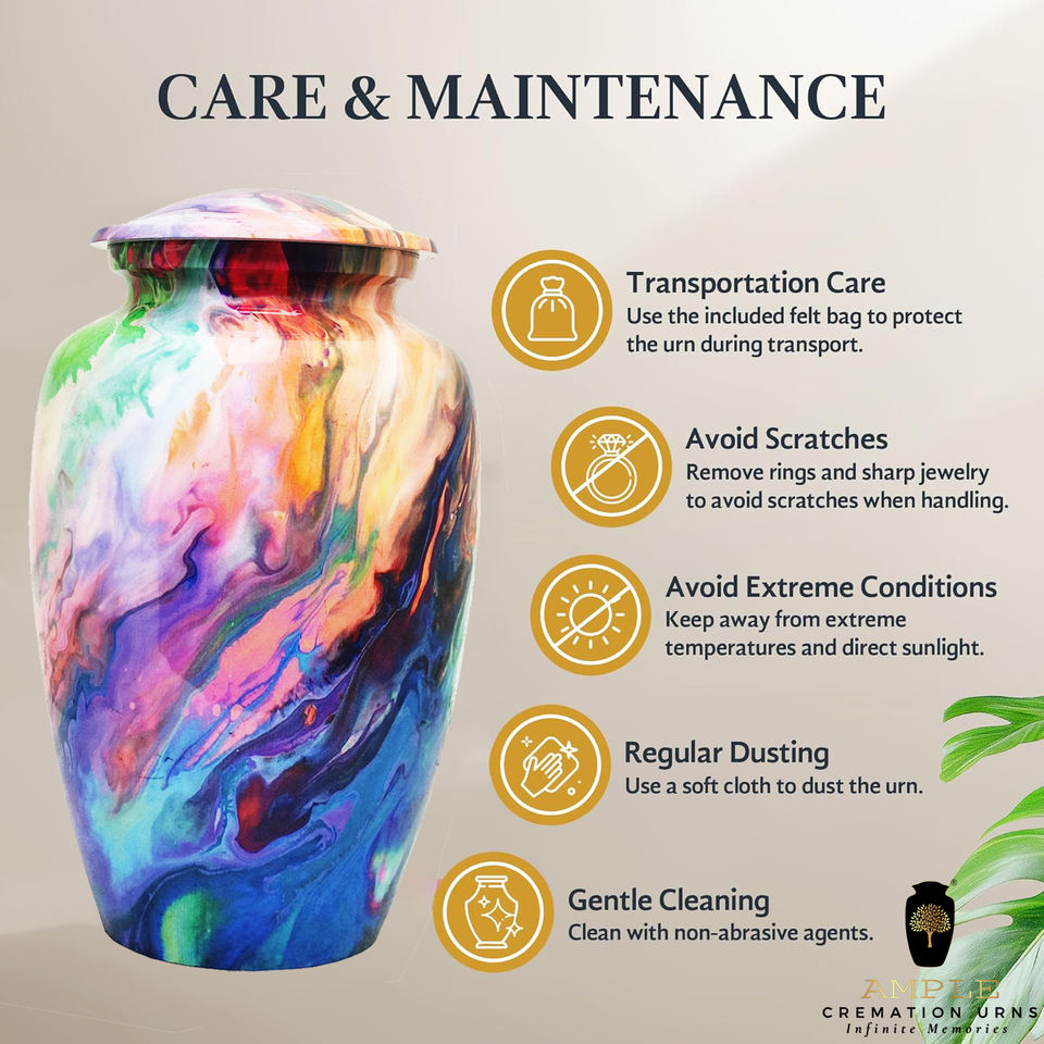 Urne funéraire artisanale en marbre multicolore, art abstrait, écologique, durable, personnalisable, pour cendres humaines adultes, 220 pouces cubes