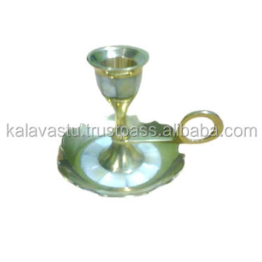 Bougeoir en laiton en métal doré mat fabriqué à la main coquille nacre pour la décoration de la maison cadeau donnant d'autres bougeoirs bougie
