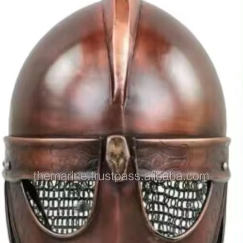 Casque d'armure de loup Viking médiéval fabriqué à la main finition en cuivre Antique avec chaîne mail et support chevalier en métal portable pour adulte
