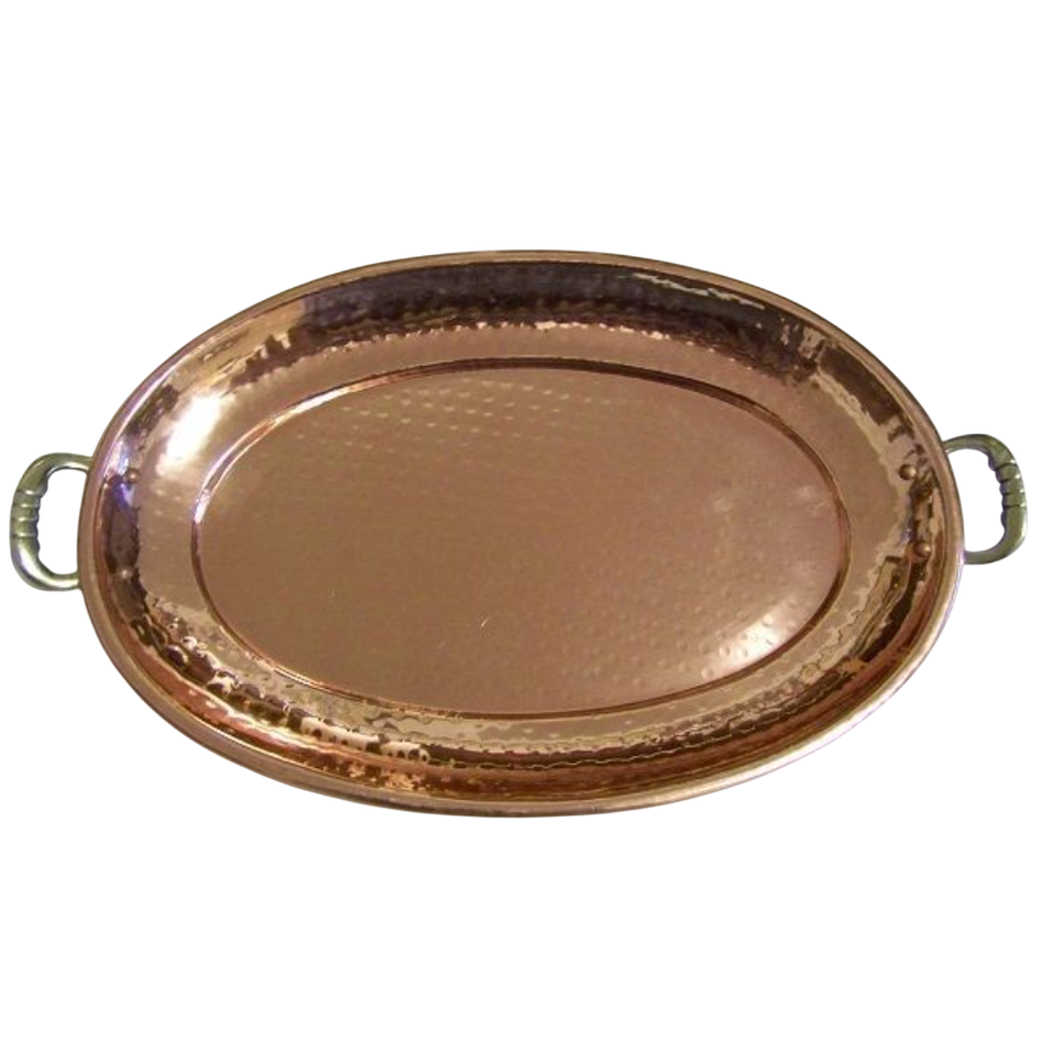 Plateau de service en cuivre artisanal avec poignées, plat ovale gravé à la main, style vintage, plateau décoratif pour la maison