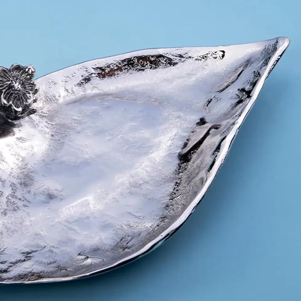 Plateau en métal artisanal pour la décoration intérieure haut de gamme, plateau organisateur, finition brillante, design argenté, blanc marbré, or, fabriqué par Zahid Export