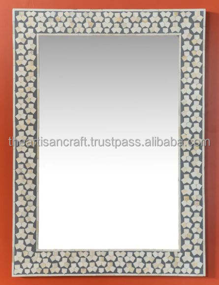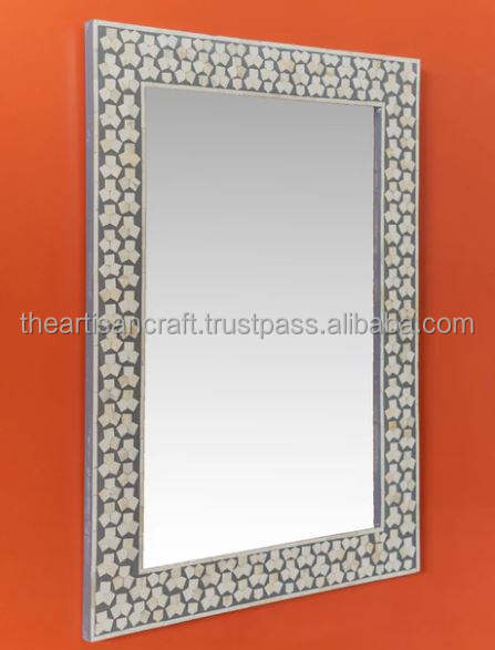 Cadre de miroir en incrustation d'os de conception moderne fabriqué à la main Miroir mural décoratif de luxe avec des options personnalisables de l'artisanat artisanal