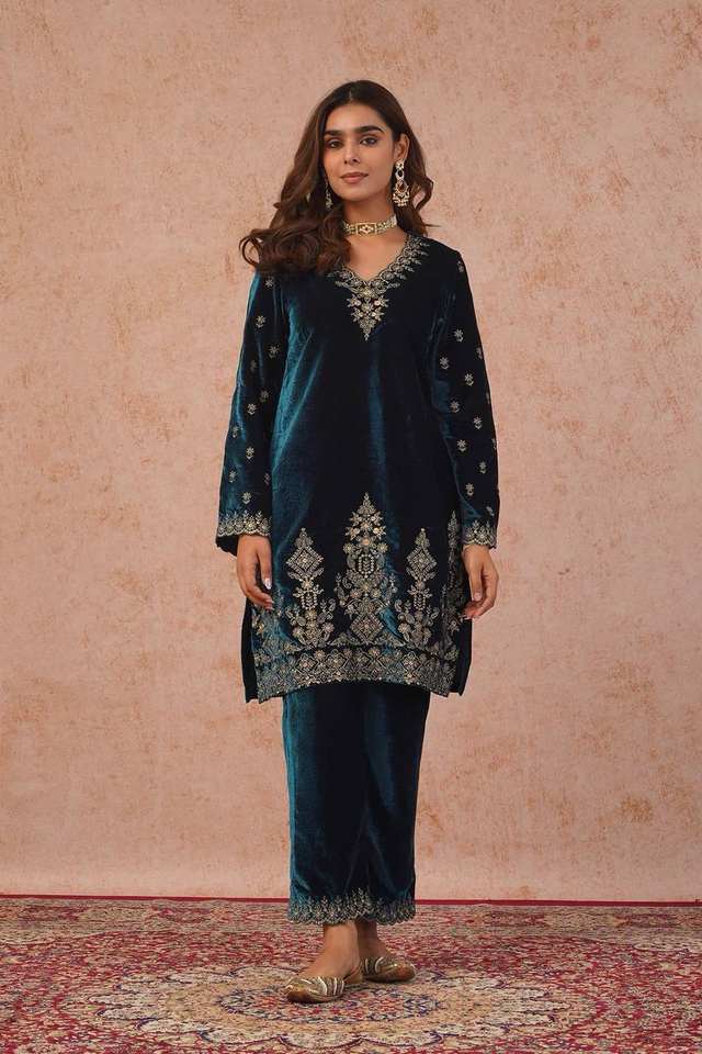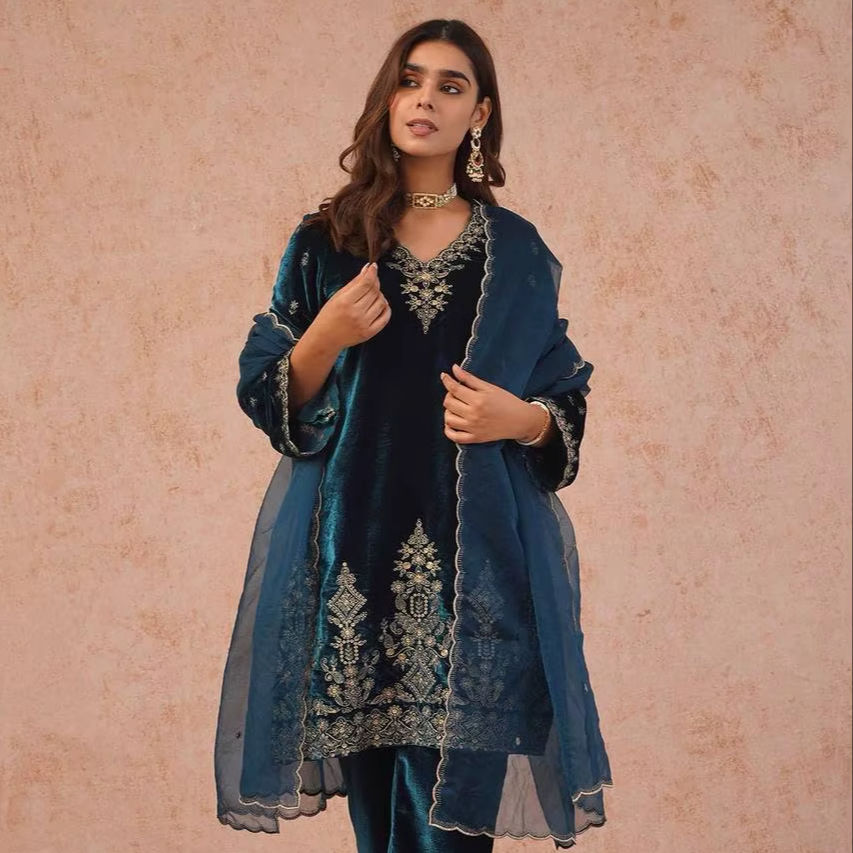 Top Fabric:Heavy Viscose Velvet, Heavy Embroidery sequence Work With Sleeves
