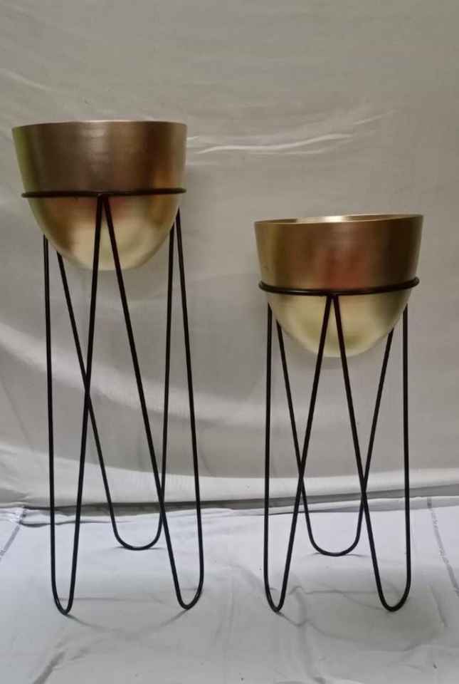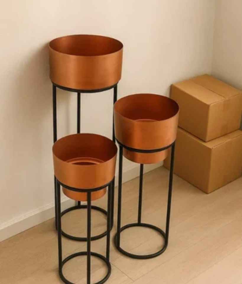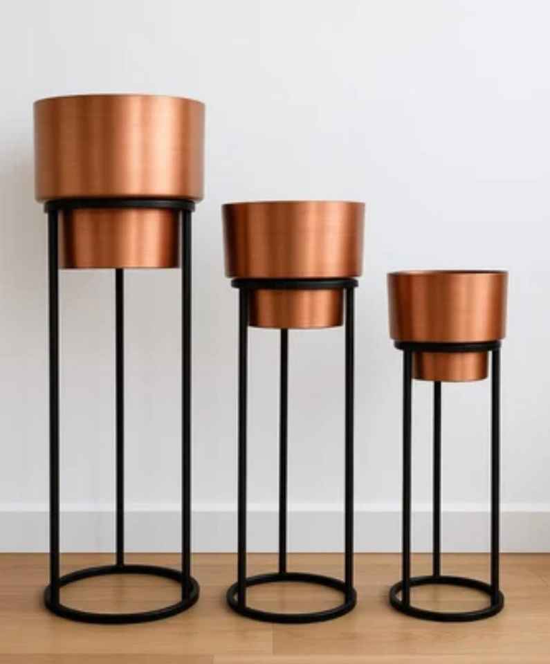 Nouvelle série de supports de jardinières en fer forgé de style moderne, faits à la main, finition cuivre, hauteur 36 pouces, résistants à la rouille et légers