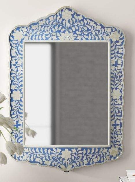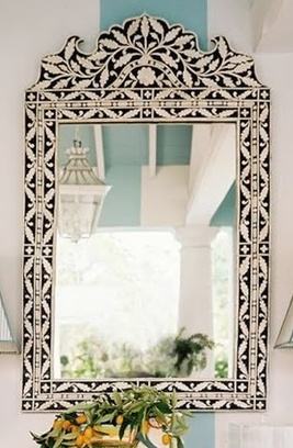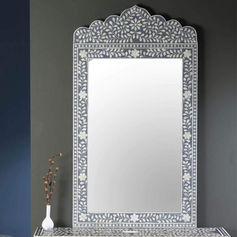 Cadre de miroir artisanal de luxe moderne en os incrusté, écologique et imposant, pour hôtels, villas et designers d'intérieur