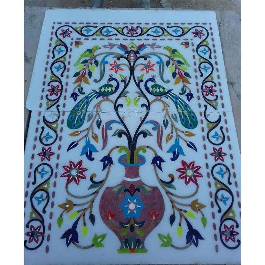 Panneaux et carreaux muraux floraux en marbre incrusté, modernes, faits à la main, imperméables et ignifuges pour usage domestique et de divertissement