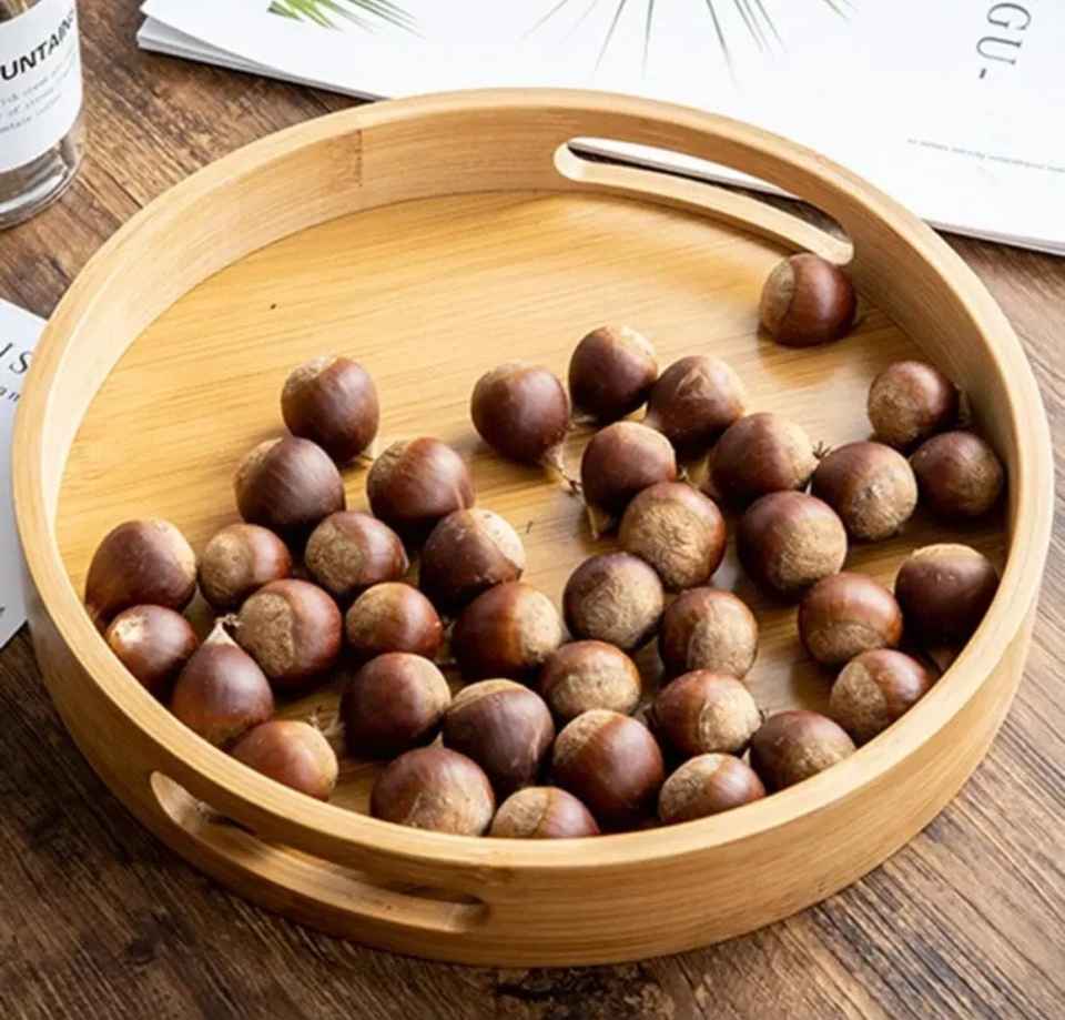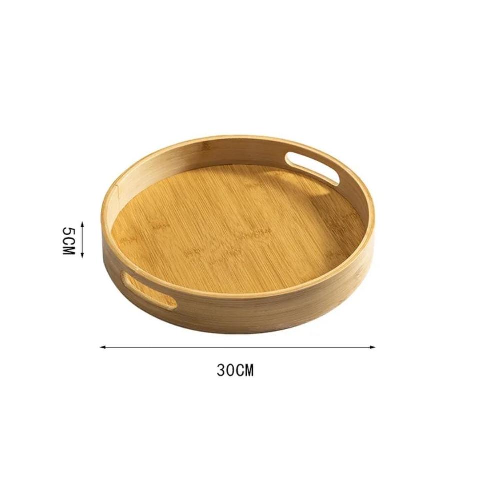 Plateau de service en bambou artisanal, motif paysager moderne, très petit, avec poignées découpées, vente en gros.