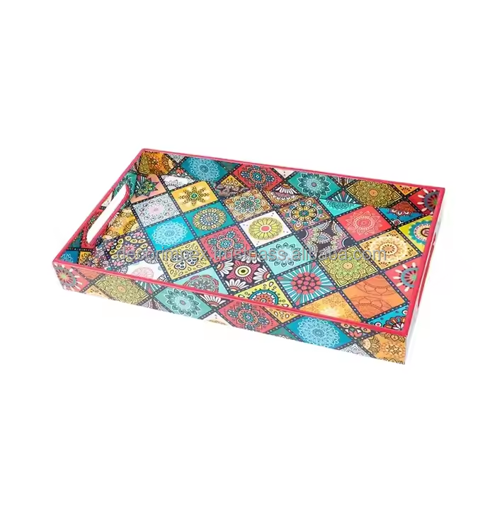 Plateau rectangulaire en bois imprimé moderne fait à la main, design unique, excellente qualité, salon, ensemble multi-pièces, cadeau d'usine