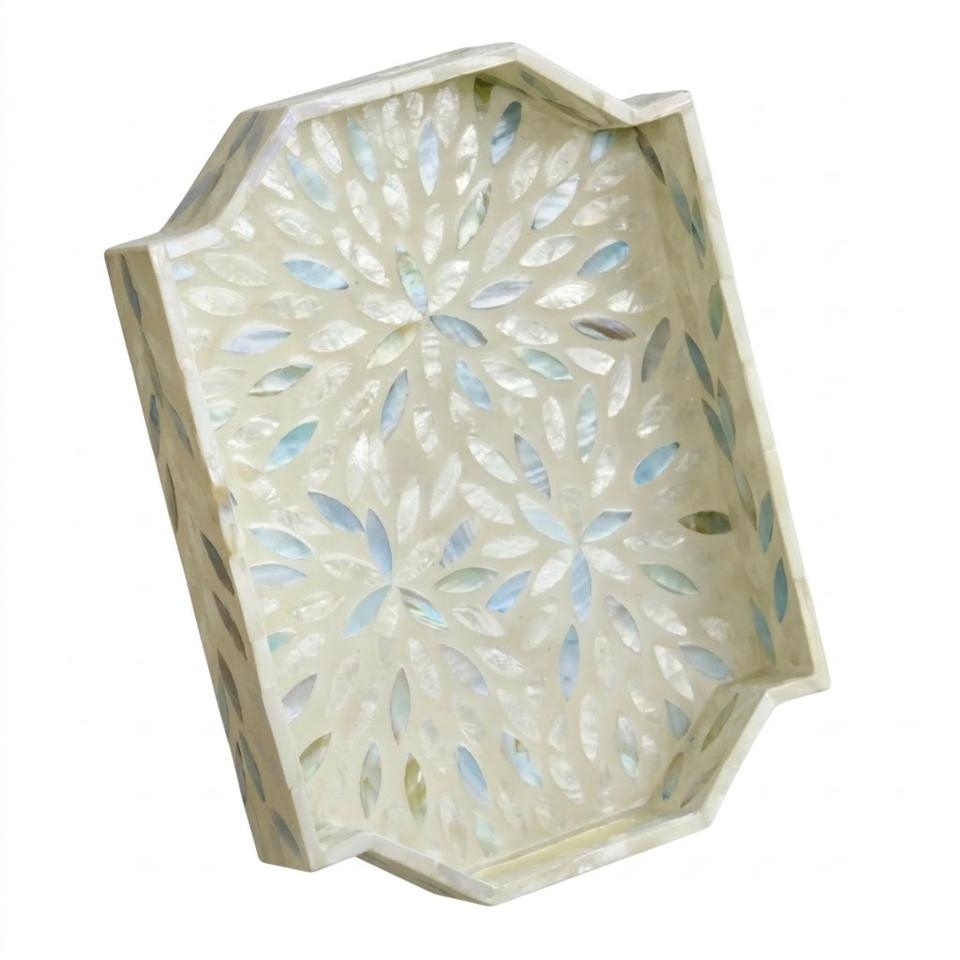 Plateau de service rond artisanal en nacre avec poignées, plateau décoratif floral de luxe pour table basse, décoration ottoman