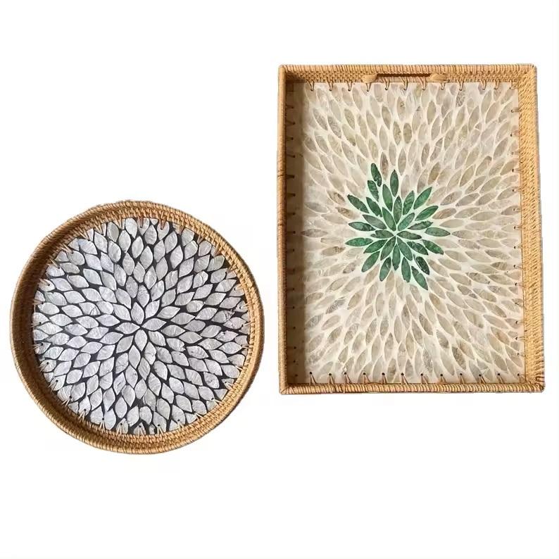 mother of pearl , resin , rattanmaterial