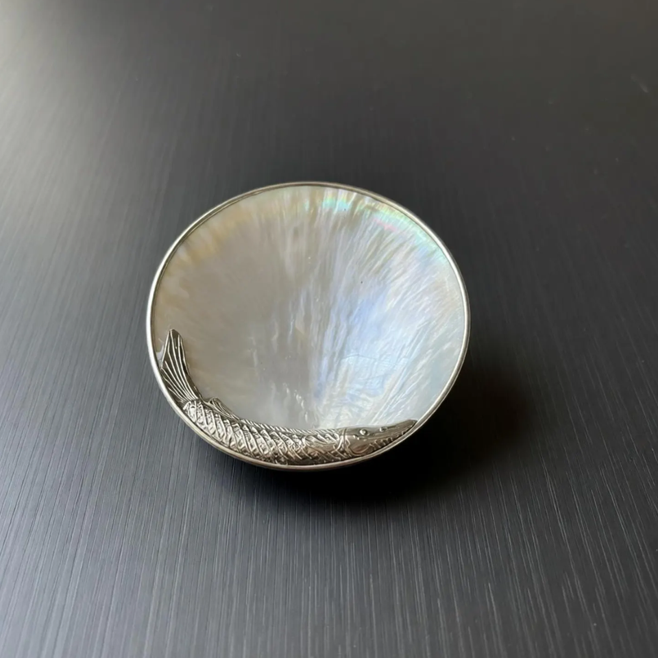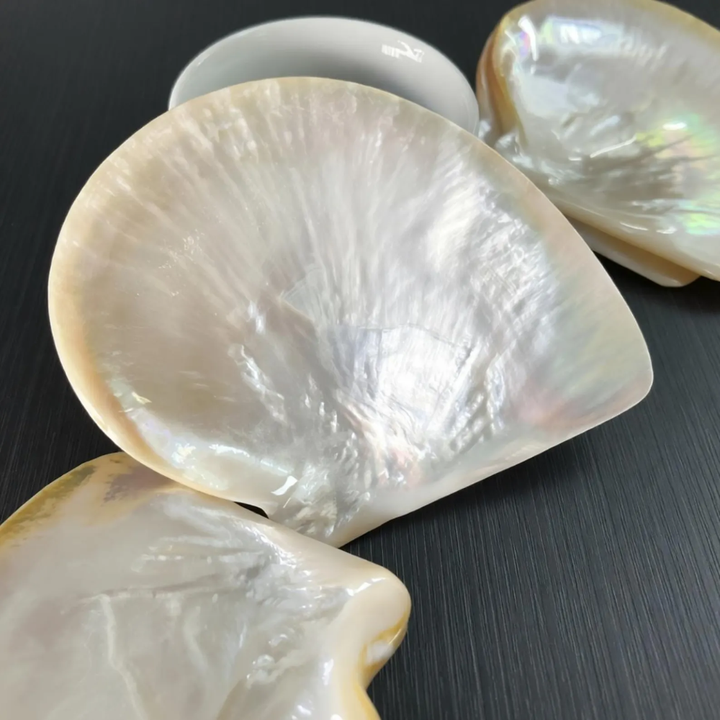 Plat en nacre artisanal avec bord sculpté pour bagues, boucles d'oreilles, service décoratif et assiette en coquille de nacre naturelle à l'éclat brillant