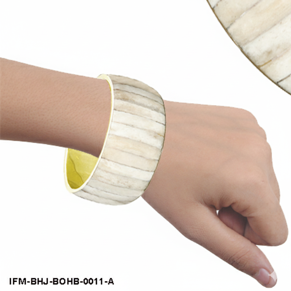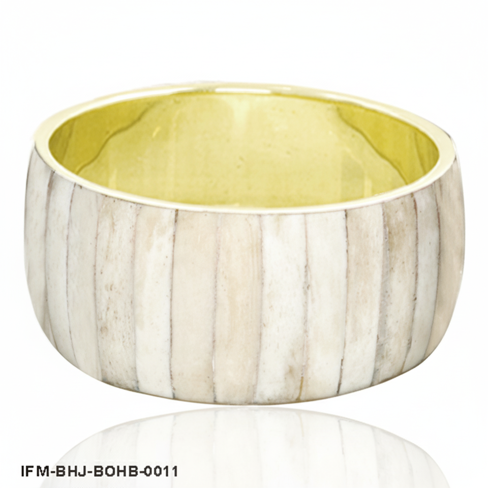 Bracelet large en os naturel et laiton fait à la main, incrustation de corne rayée, bracelet statement, style bohème chic, bijoux empilables