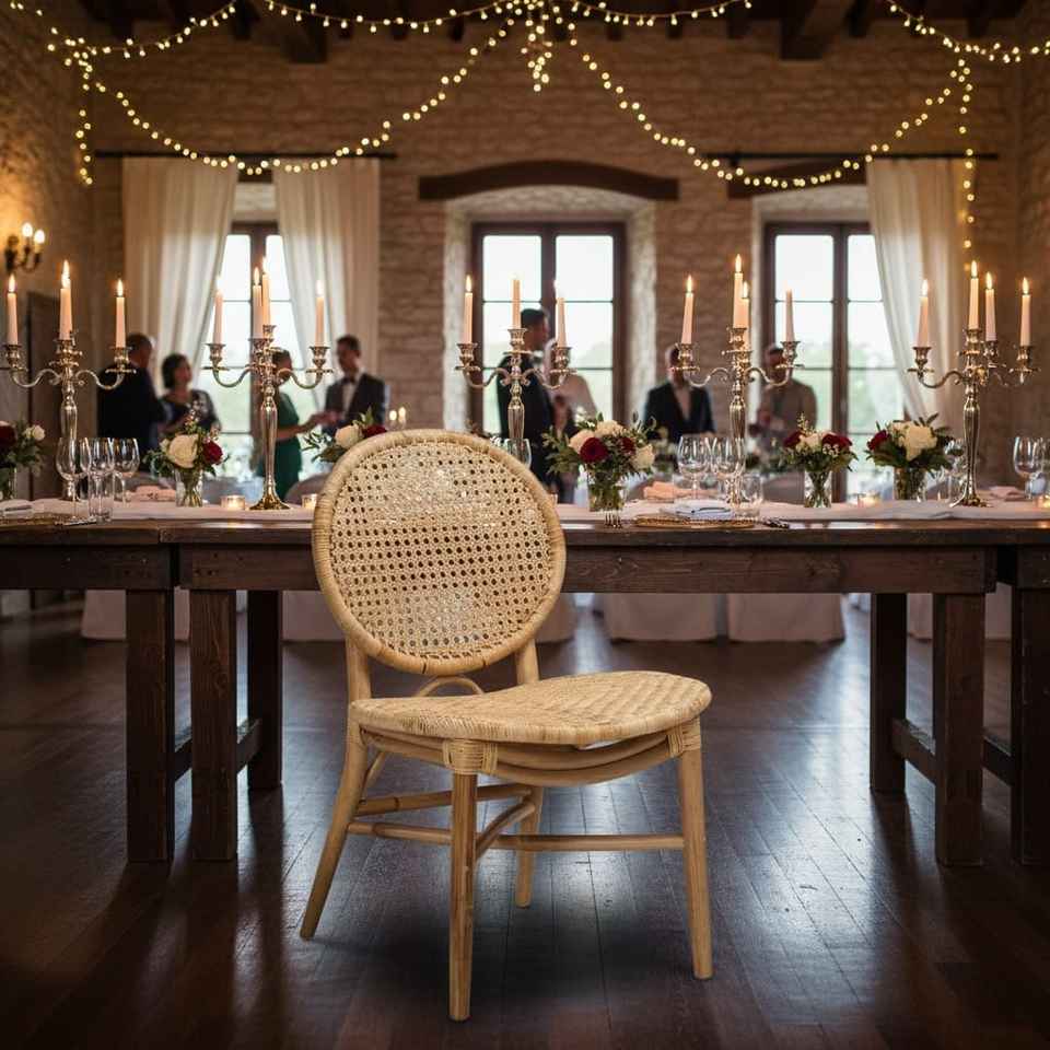 Chaise de mariage en rotin naturel fabriqué à la main Design minimaliste et confortable pour une cérémonie en plein air avec des sièges pour villa/hôtel