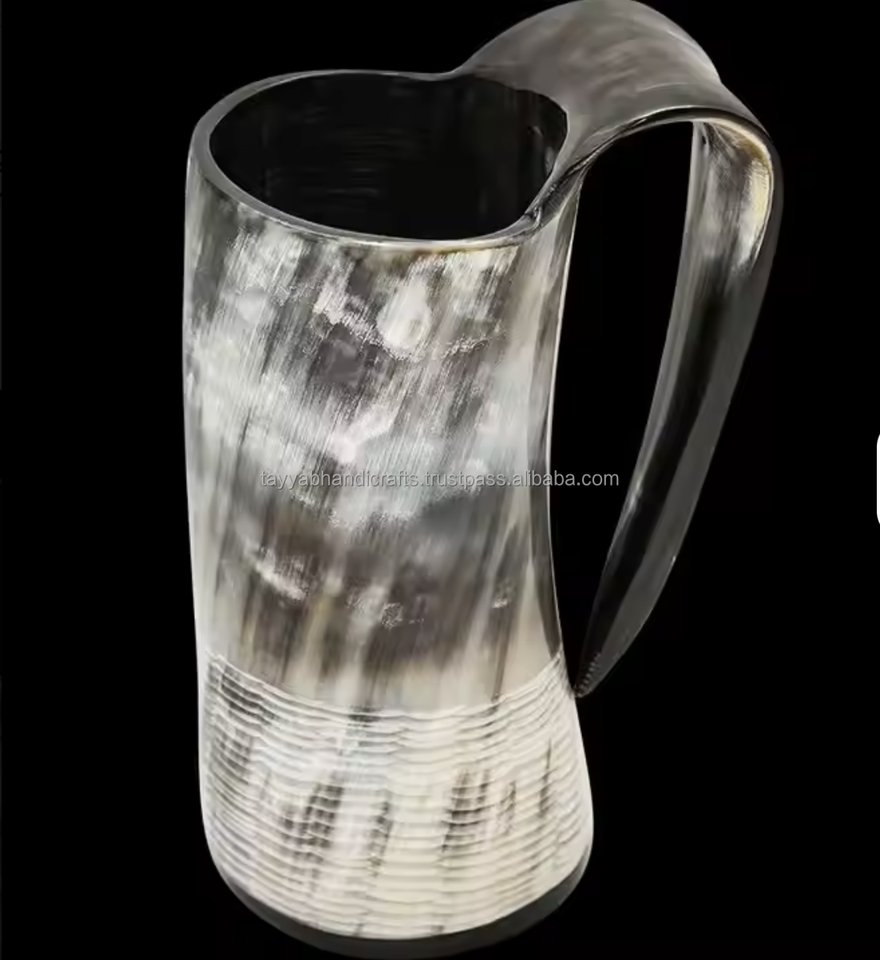 Mug en corne naturelle artisanal, base en bois polie, pour boissons chaudes ou froides, en provenance d'Inde