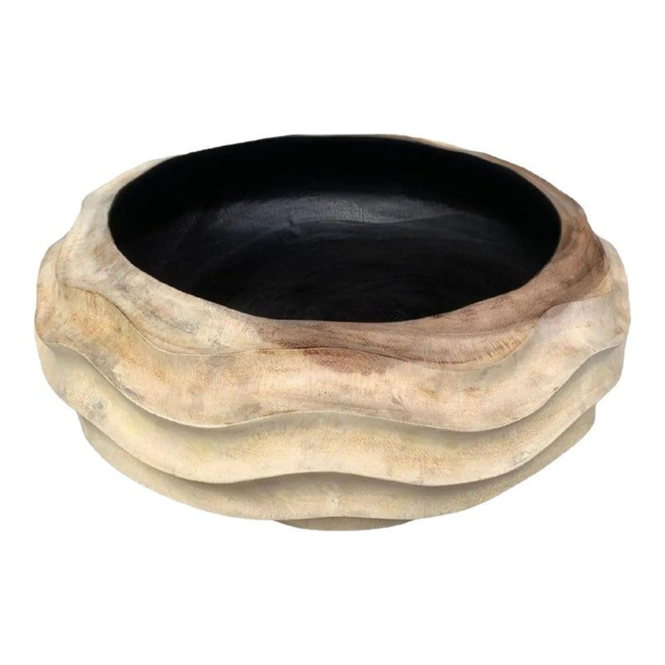 Bol en bois naturel artisanal avec des lignes noires, bol de service décoratif, articles de cuisine, bol à fruits ou à salade unique tourné à la main