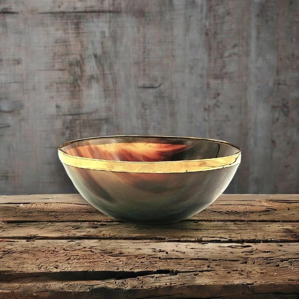 Handcrafted Natural Polished Modern Durable Non-Toxic Food-Safe Eco-Friendly Buffalo Horn Bowl Brass Rim Kitchen Serving Bowl