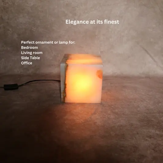Lampe de table en pierre naturelle artisanale, lampe en onyx cube de 6 pouces, lumière de nuit décorative de luxe