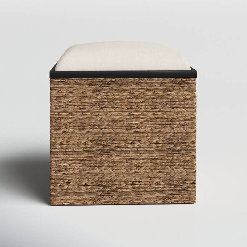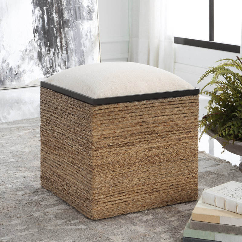 Handcrafted Natural Wood and Fiber Accent Stool Decorative Seating Object