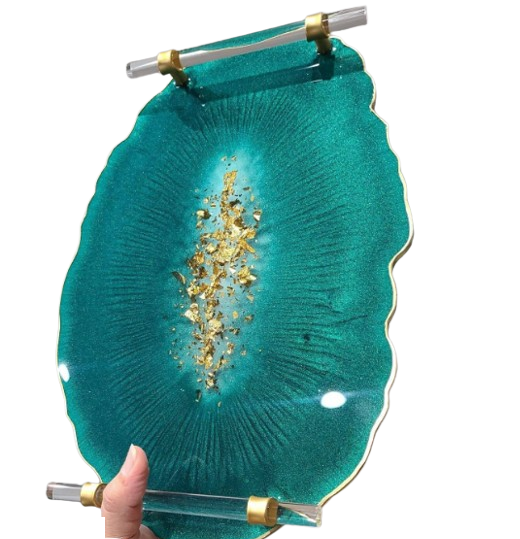 Plateau de service en bois et résine de conception de nouveauté artisanale avec du bois de manguier de qualité supérieure fabriqué à la vente par des exportateurs indiens