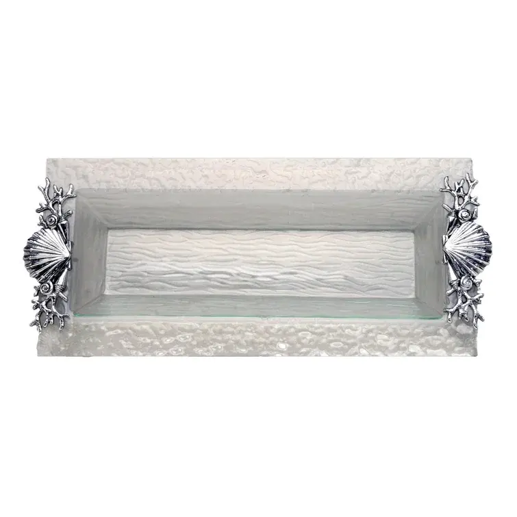 Plateau en métal ovale artisanal, motif vertical, design moderne pour la décoration de Noël, fonction de projection rétractable, fabriqué par Zahid