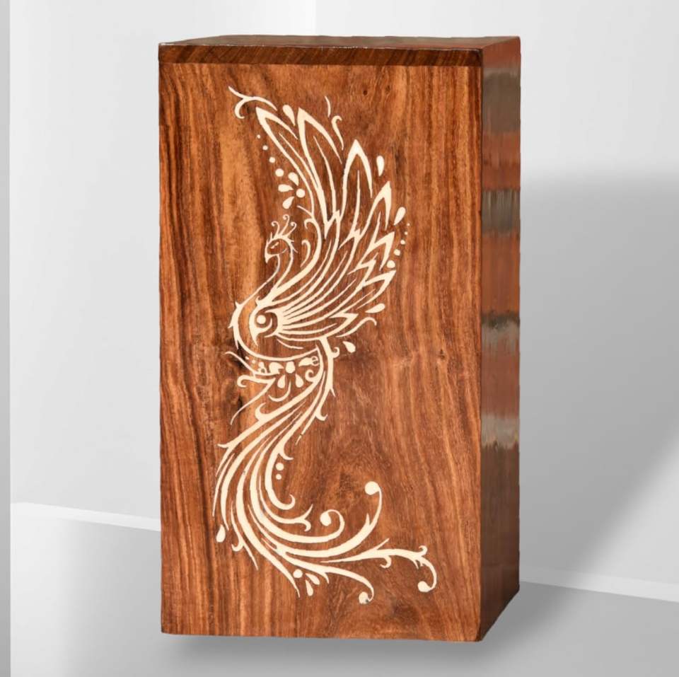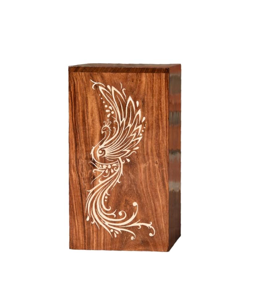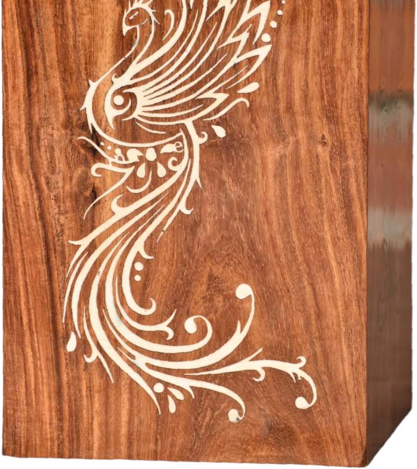 Paon artisanal avec urne figure d'arbre pour cendres humaines boîte en bois avec couvercle urne pour animaux de compagnie urne funéraire souvenir