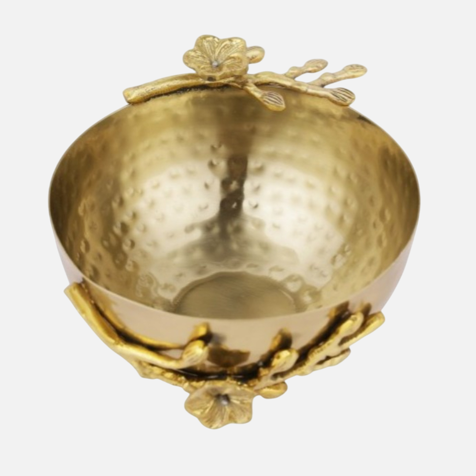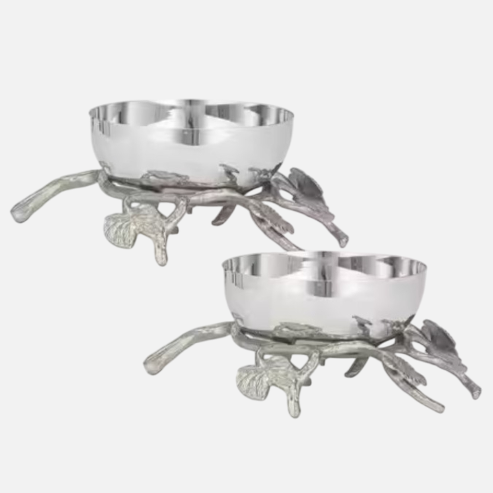 Ensemble de 2 bols en métal avec finition polie et artisanale, bol à salade décoratif au design floral pour hôtel et restaurant