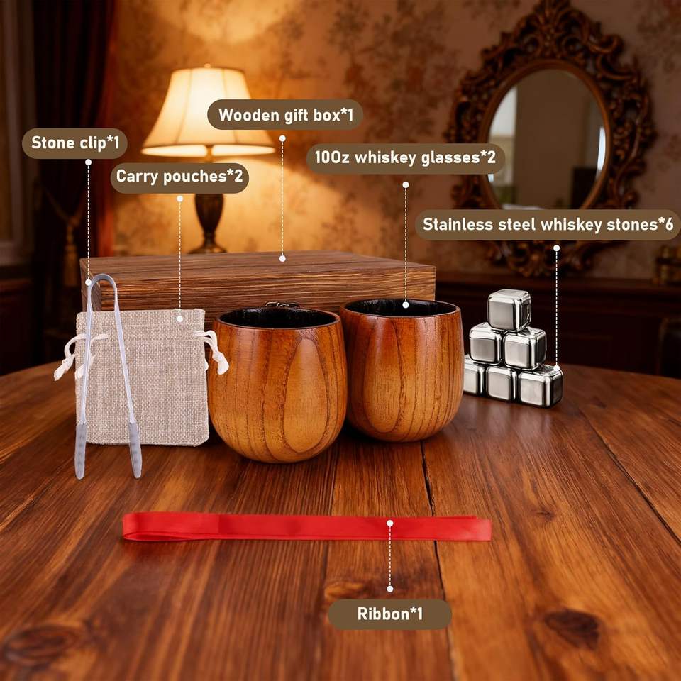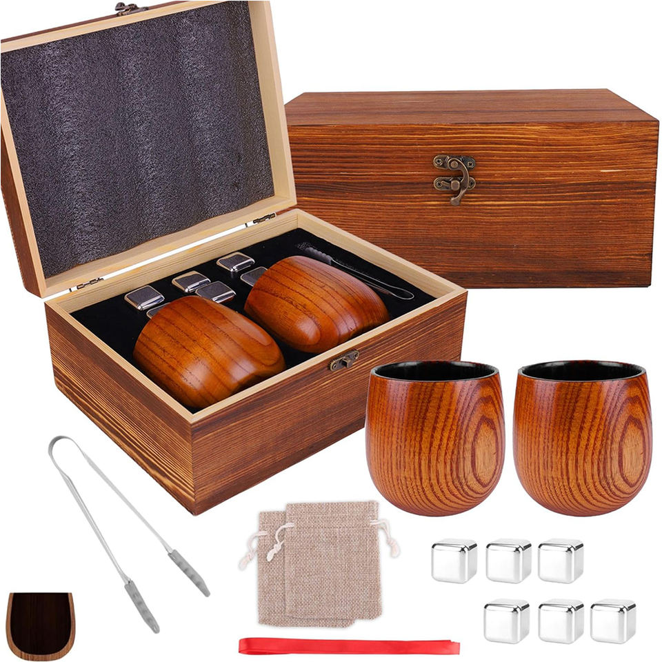 Coffret en bois artisanal haut de gamme, ensemble de verres à whisky personnalisés en bois, avec pierres à vin en acier inoxydable 304, idéal pour un cadeau