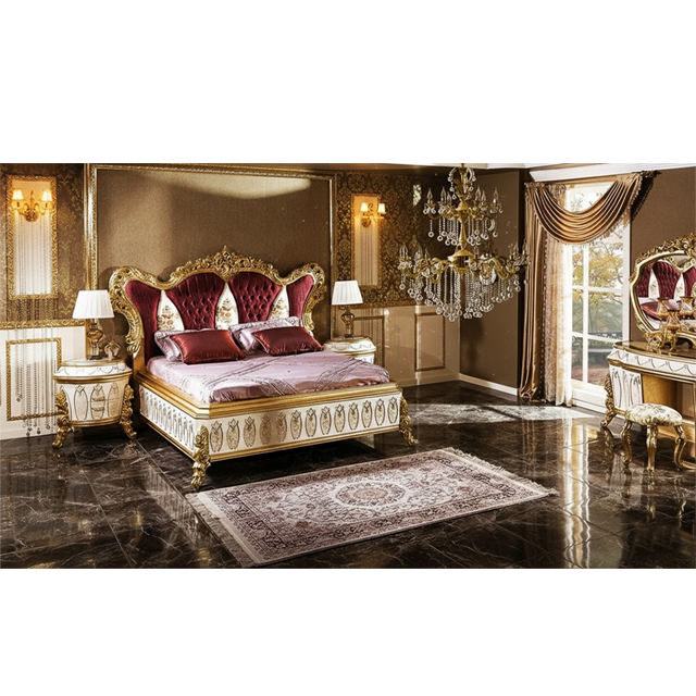 Ensemble de meubles de chambre à coucher en teck de style européen de luxe, fabriqué à la main, taille personnalisée, style royal Maharaja Grand Empire