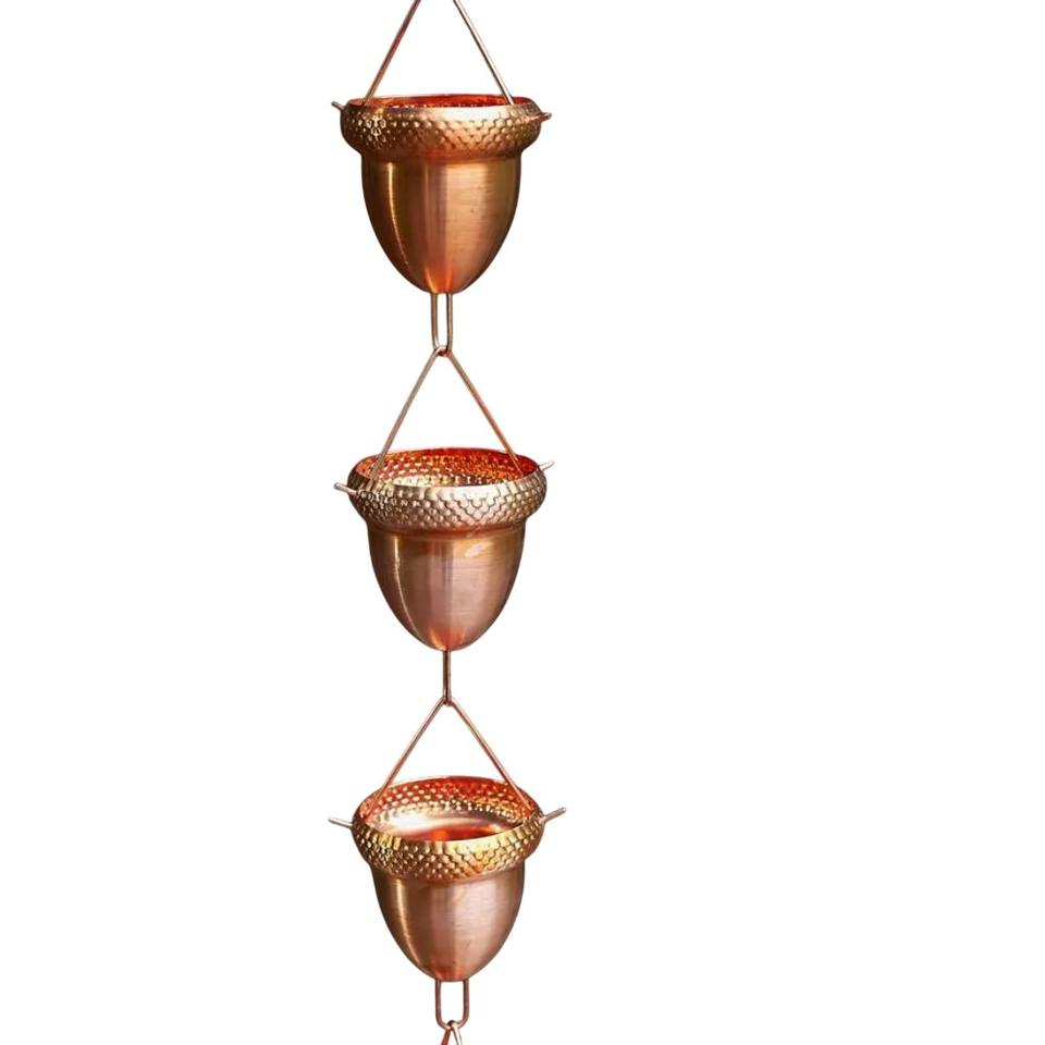 Chaîne de pluie décorative artisanale en cuivre pur, style cloche, pour gouttière, jardin et décoration intérieure, élément décoratif pour l'eau de pluie