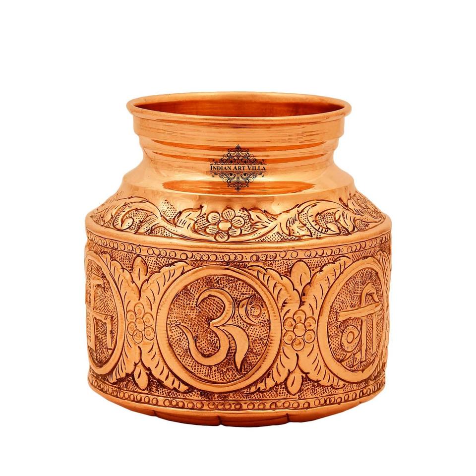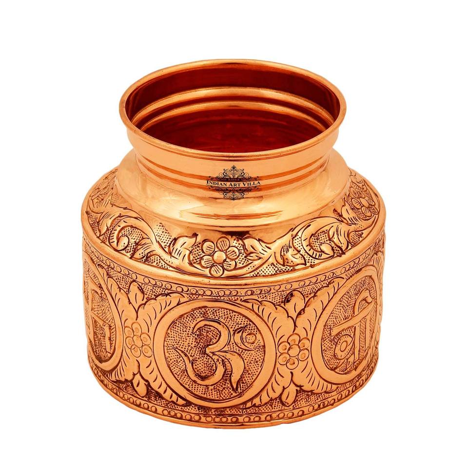 Lampe à huile spirituelle artisanale en cuivre pur avec motif Om Swasthik Shree et accessoire de Puja