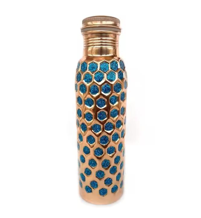 Bouteille d'eau en cuivre pur fabriquée à la main pour salle de sport, bureau et voyage du fabricant et fournisseur indien