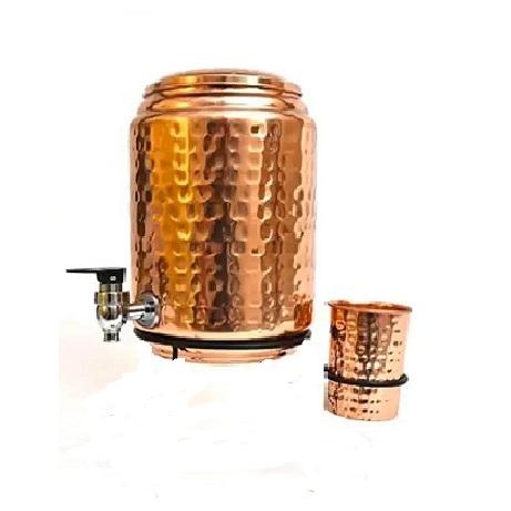 Refroidisseur d'eau en cuivre pur fabriqué à la main Design traditionnel pour une hydratation quotidienne saine Routine extérieure Avantages ayurvédiques