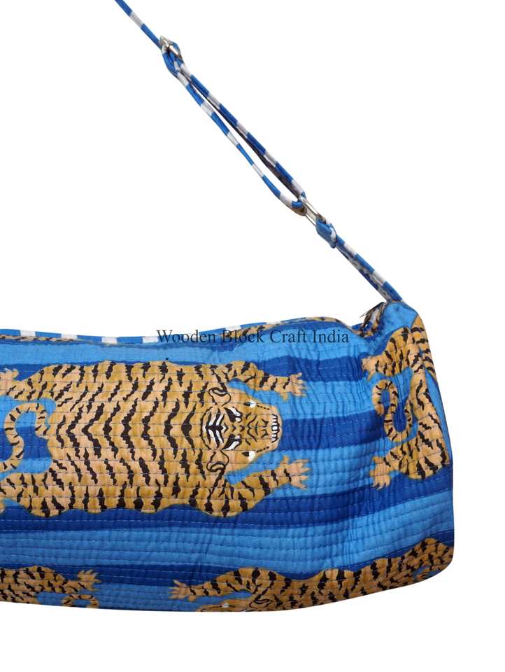 Sac de yoga matelassé artisanal à motif tigre, sangle réglable, tissu léger, parfait pour les voyages et l'usage quotidien