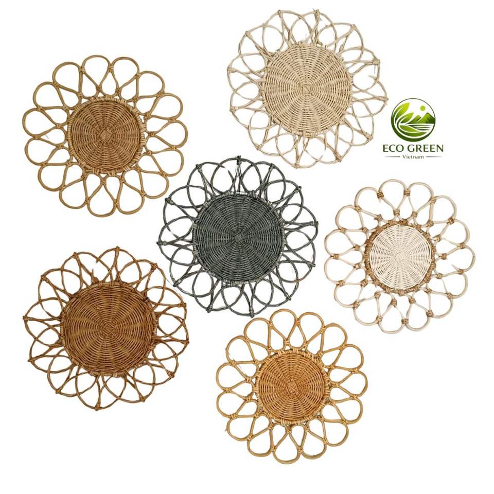 Napperons en rotin faits à la main, motif tressé, décoration murale, style bohème et rustique, dessous de plat résistant à la chaleur, décoration naturelle pour la maison