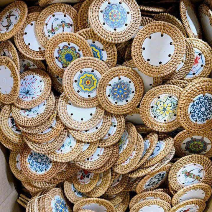 Dessous de verre en rotin et céramique fabriqués à la main du Vietnam-Dessous de verre naturel élégant pour la maison, le café et les cadeaux