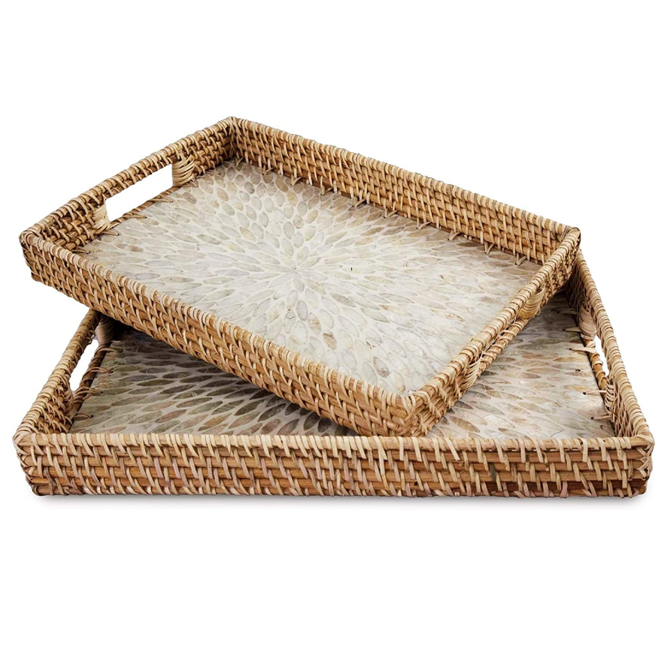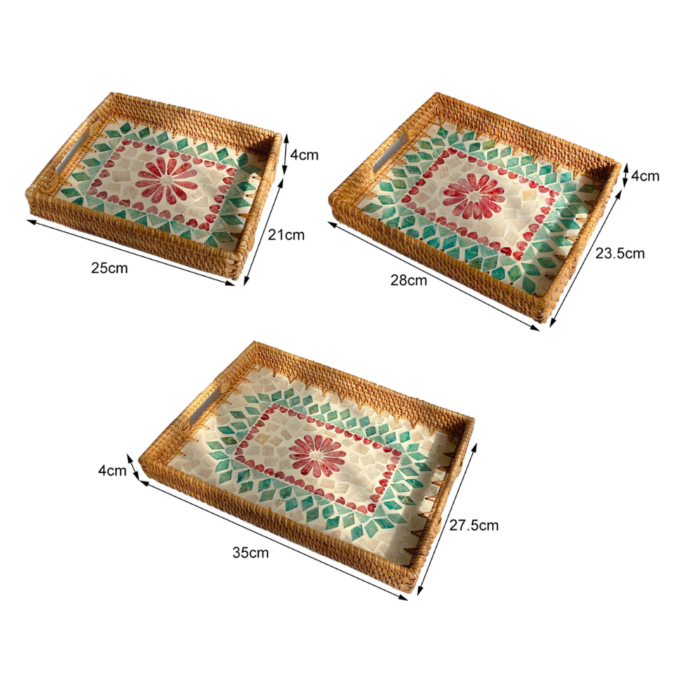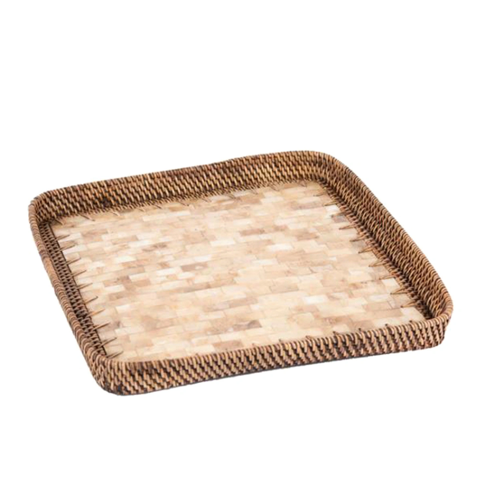Natural rattan tray with MOP wooden base