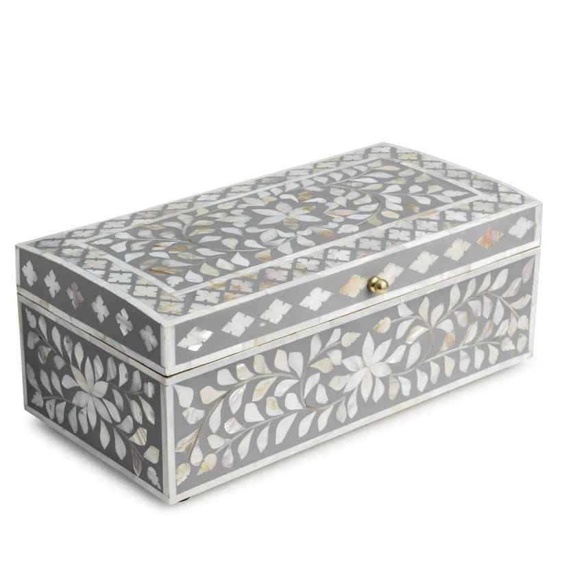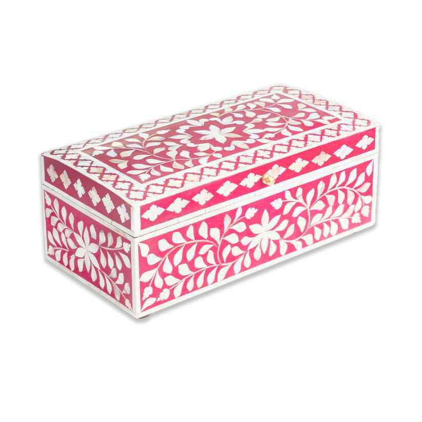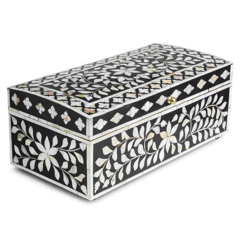 Boîte de rangement rectangulaire en bois fabriquée à la main avec incrustation d'os de qualité supérieure et vadrouille idéale pour bagues, colliers, bracelets et cadeaux spéciaux