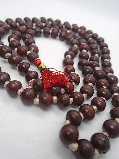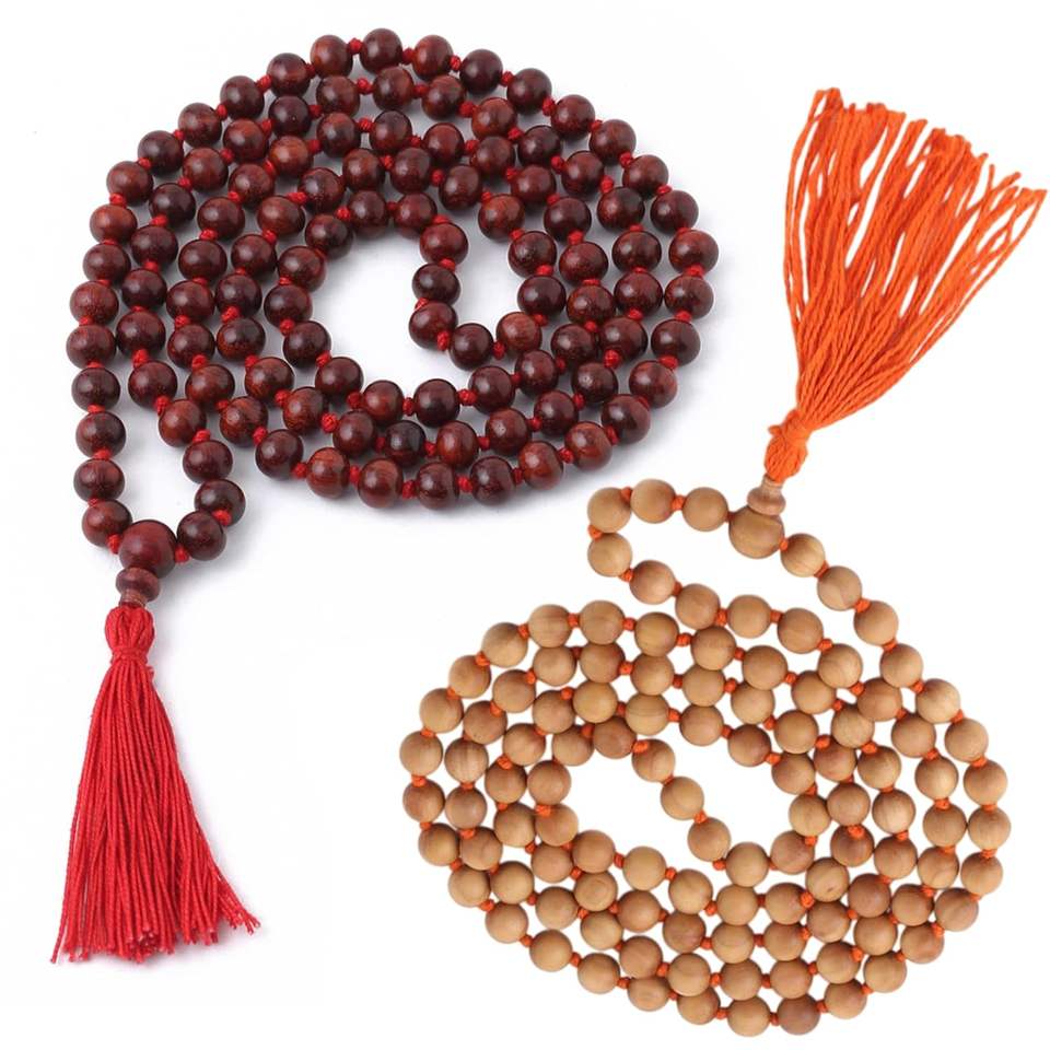 Handcrafted Red & White Sandalwood Mala Combo 6mm Knotted Wooden Rosary Meditation Pooja and Chanting