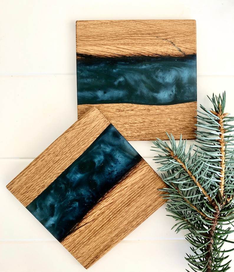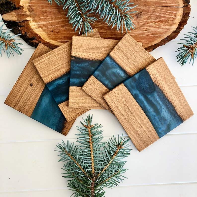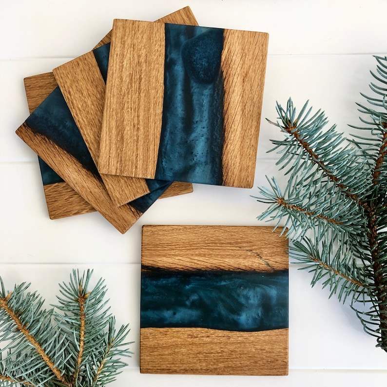 Ensemble de sous-verres en résine faits à la main avec un design de rivière unique, durables et imprimés UV, style art moderne pour la décoration intérieure et les cadeaux de mariage