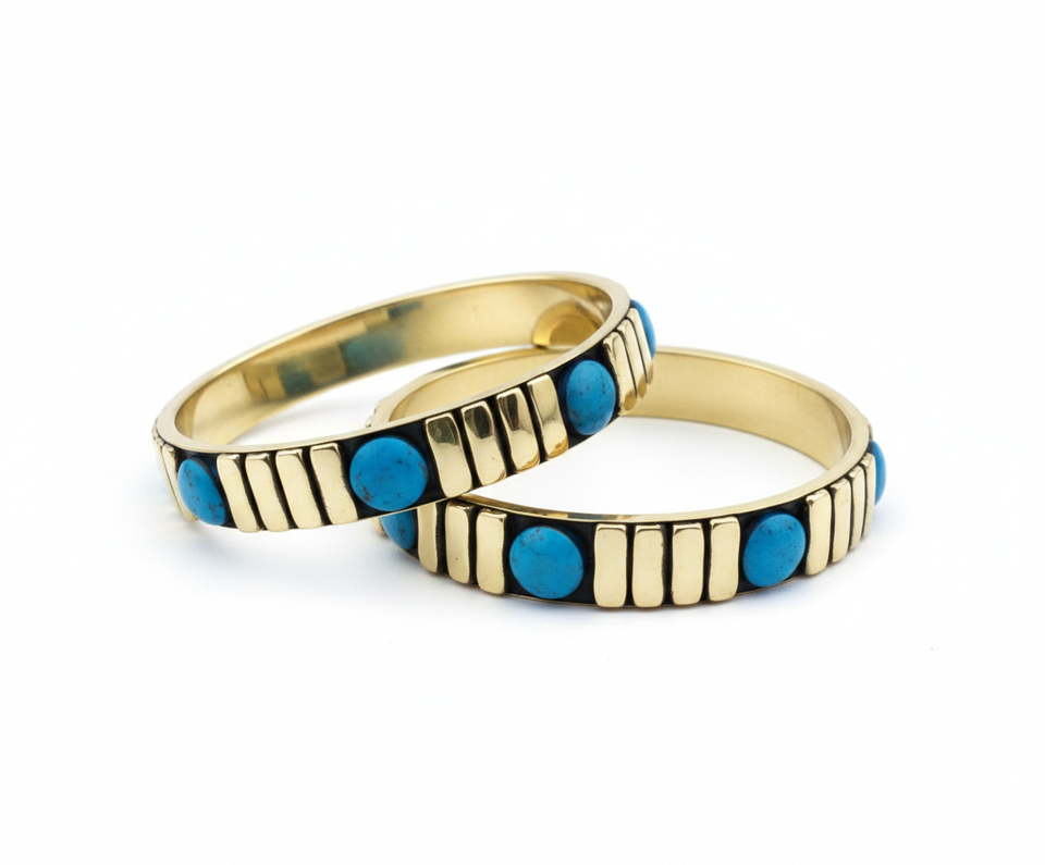 Ensemble de bracelets ethniques bohèmes en laiton doré, incrustés de résine turquoise et de cabochons bleus, faits à la main, vente en gros de bijoux
