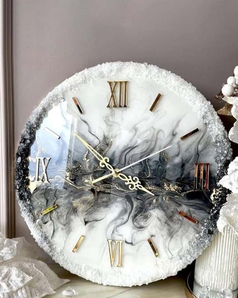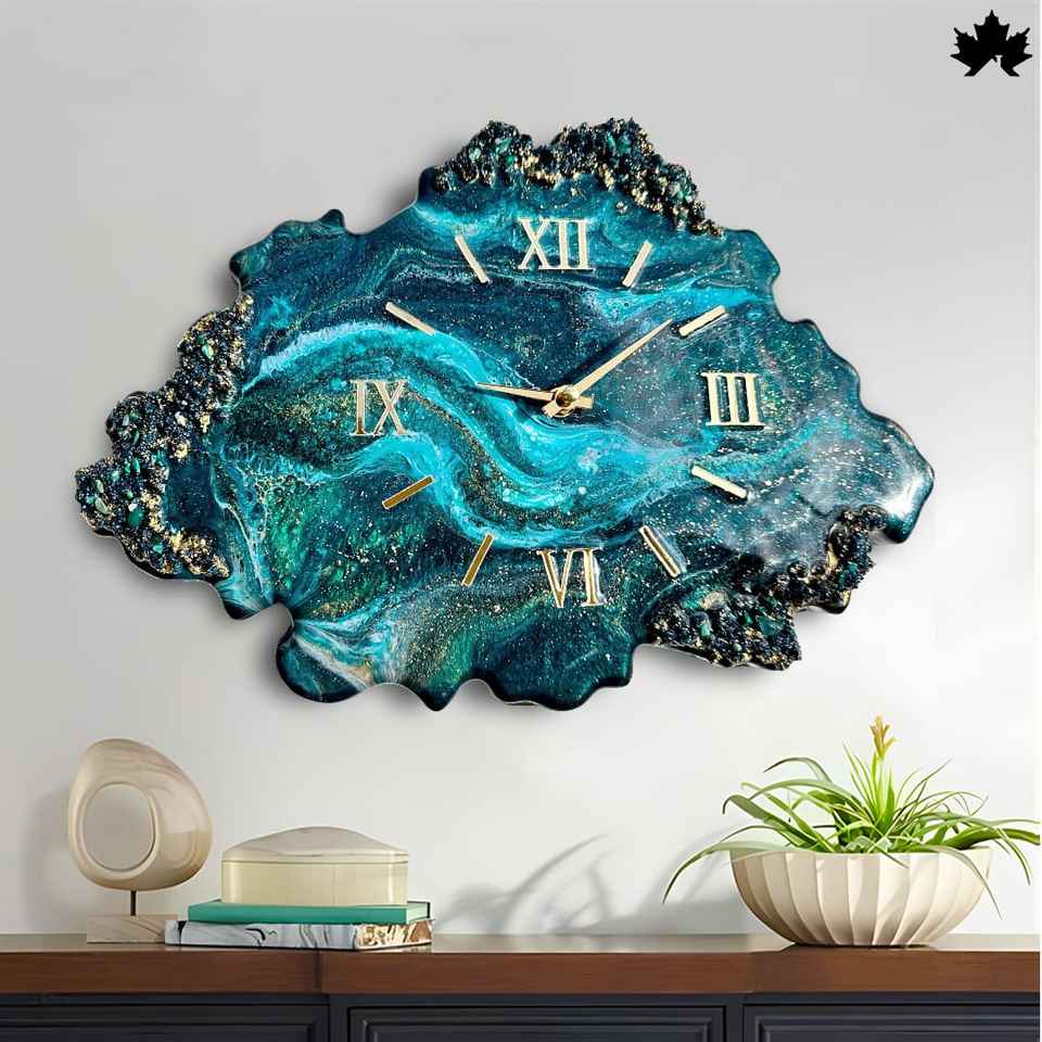 Horloge murale en résine artisanale avec horloge murale au design artistique unique faite à la main Art en résine d'Inde