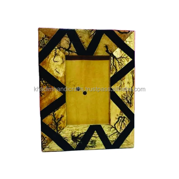 Cadre photo en bois de résine artisanale avec incrustation d'os Cadre photo décoratif en MDF et corne pour intérieurs de maison et d'hôtel