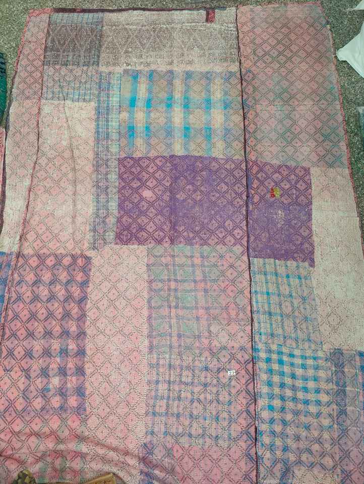 Kantha Réversible Fait à la Main Kantha Durable Cousu à la Main Traditionnel Vintage 100% Coton Fait à la Main Boho Chic Kantha