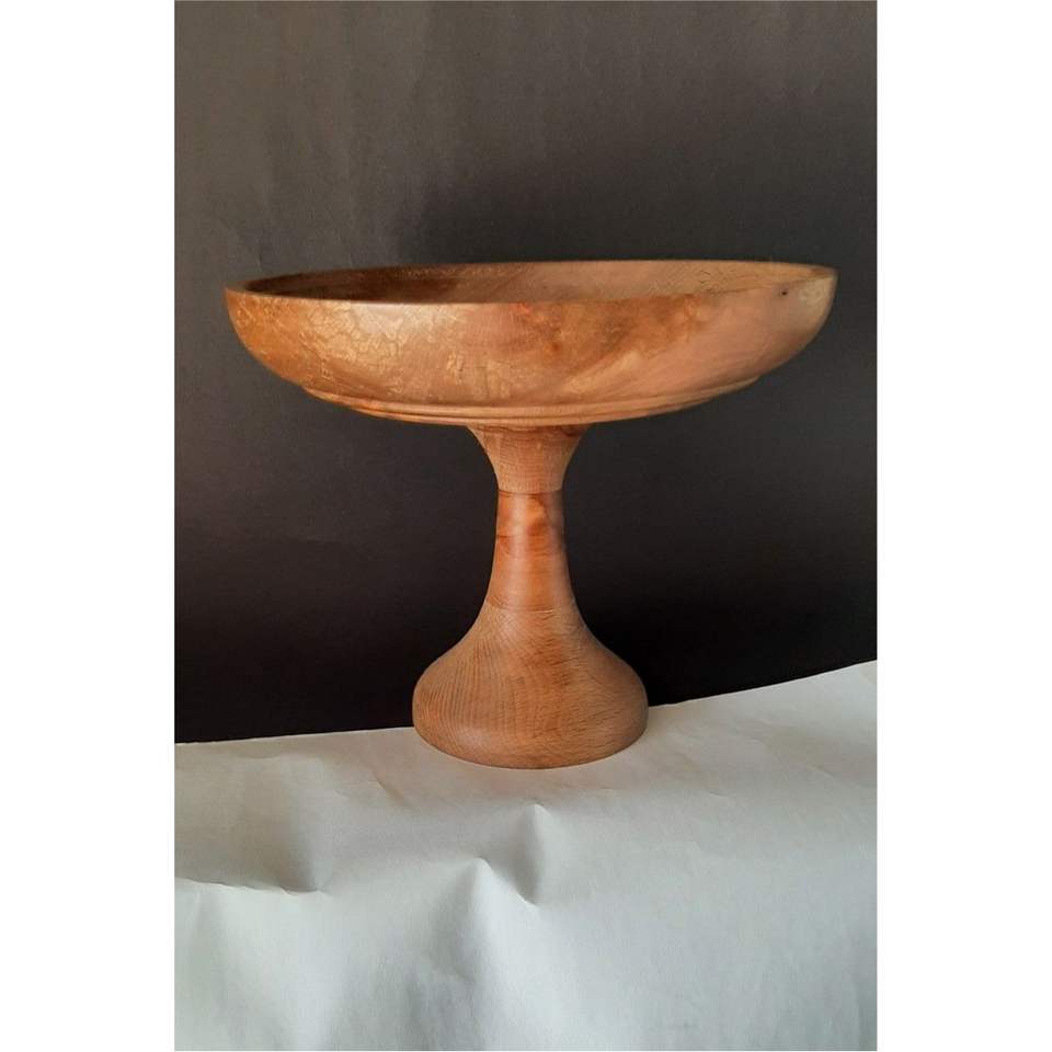 Bol décoratif sur piétement en bois de manguier côtelé fait main | Bol à fruits en bois durable pour la cuisine et la décoration de table | Bol de 10 pouces