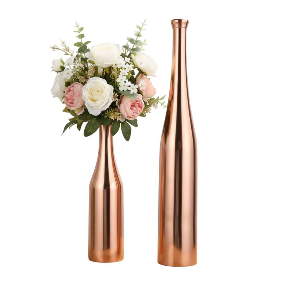 Ensemble de 2 vases à fleurs en métal doré rose faits à la main, en forme de bouteille de champagne en aluminium, pour la décoration de la maison et du salon