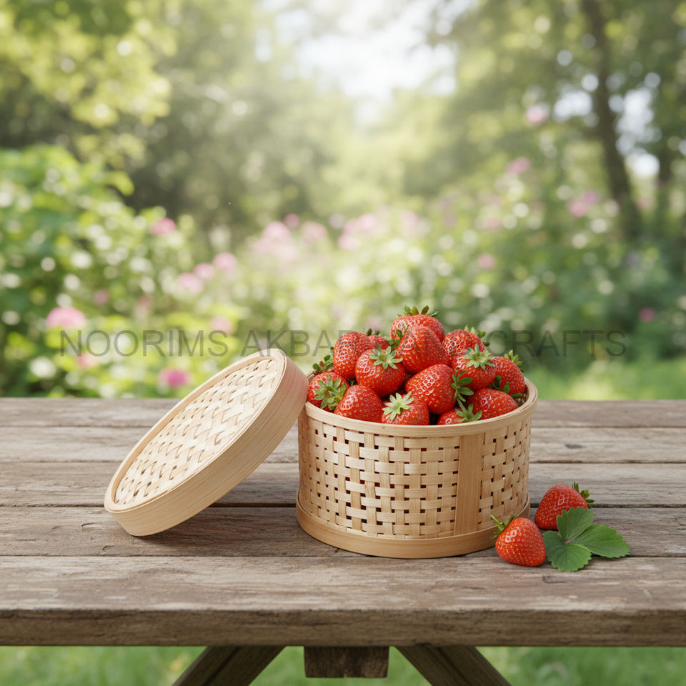 Boîte de rangement ronde en bambou artisanale avec couvercle, organisateur naturel, pièce utilitaire pour la maison, fournisseur en gros, exportateur d'usine pour la vente en gros