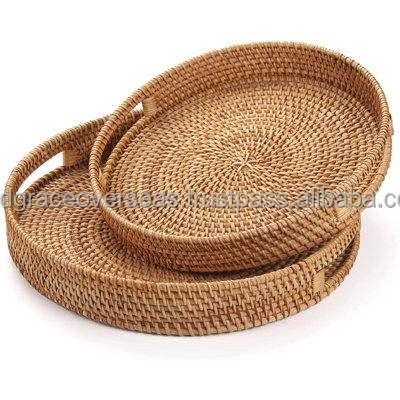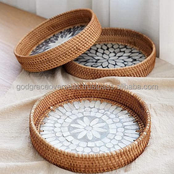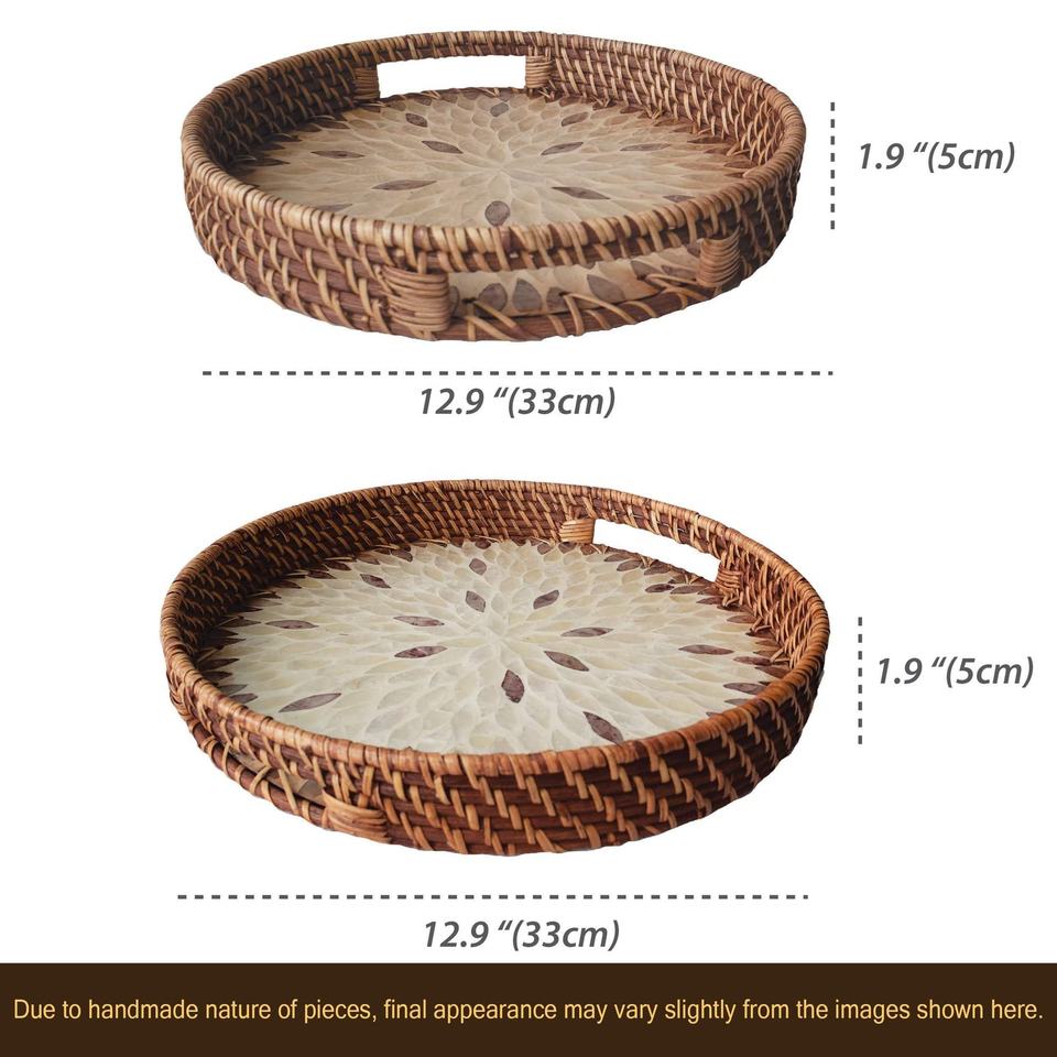 Plateau de service rond fabriqué à la main d'Inde Plateau de service en bois de rotin de haute qualité avec incrustation de nacre utilisé pour la cuisine